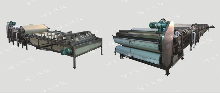 采用濃縮壓濾臥式分體結(jié)構(gòu),具有10米加長(zhǎng)重力濃縮脫水段,擠壓段配置12條輥,大弧形預(yù)壓段,2條"L"形雙面快速排水脫水輥,1-2組多孔對(duì)壓輥。整機(jī)由整機(jī)是由驅(qū)動(dòng)裝置、機(jī)架、壓榨輥、上濾帶、下濾帶、濾帶張緊裝置、濾帶清洗裝置、卸料裝置、氣控系統(tǒng)、電氣控制系統(tǒng)等組成,該設(shè)備通過(guò)長(zhǎng)時(shí)間精心研發(fā),有機(jī)械性能穩(wěn)定、處理量大、深度脫水效果好、防腐性好、使用壽命長(zhǎng)、減少二次污染等優(yōu)點(diǎn)。