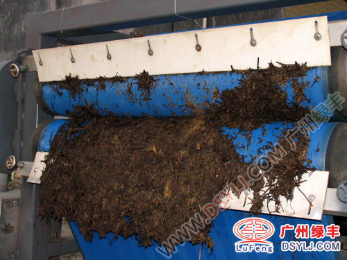 王老吉涼茶渣壓濾脫水效果廣州綠豐輥壓脫水機對輥壓渣機植物渣脫水圖例效果展示