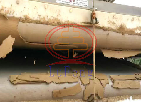 濃泥漿經(jīng)設(shè)備壓濾后成泥餅狀