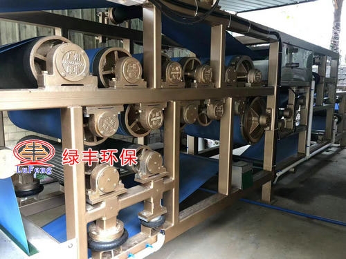 7-13多輥果渣漿汁壓榨脫水機(jī)(果蔬渣脫水機(jī))DYQ1500-3500,(帶寬1.5米-3.5米機(jī)),總長7米左右,高壓區(qū)可根據(jù)物料及含水率要求配置7-13輥和2組對壓輥,? 適合果蔬渣或短纖維渣漿類物料脫水,快速有效降低物料所含水分。