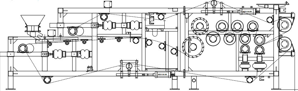 果渣漿汁壓榨機(jī)(9輥)結(jié)構(gòu)示意圖: