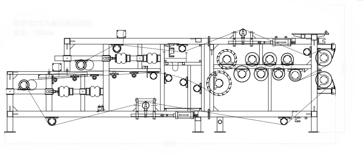 2帶式多輥渣漿脫水機系列——土豆渣專用脫水機,根據(jù)土豆物料性質配置9條擠壓脫水輥,采用高效多輥連續(xù)壓榨技術,提高了土豆渣脫水的速度和效率,同時降低了能耗,使得生產成本大大降低。另外,該機的濾網(wǎng)設計獨特,可以有效避免堵塞,延長了設備的使用壽命。